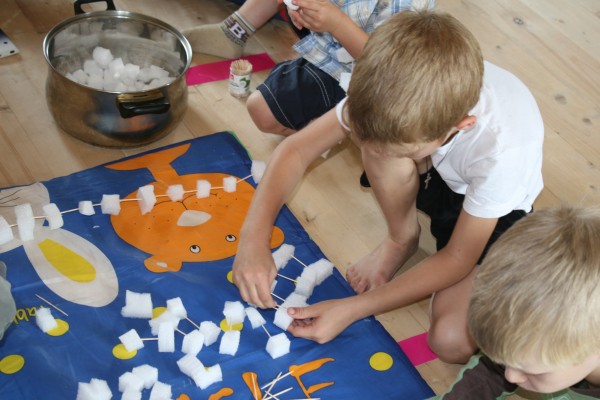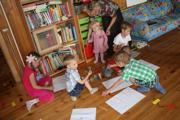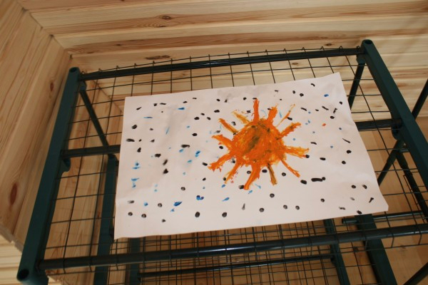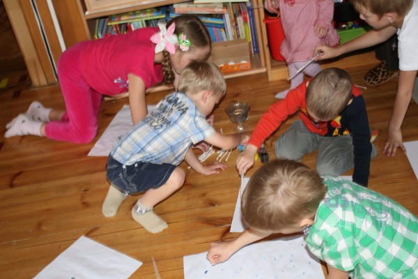 Выданы были пипетки и ватные палочки ) пипеткой оставить капельки на листе. Потом ватными палочками нарисовать что-нибудь