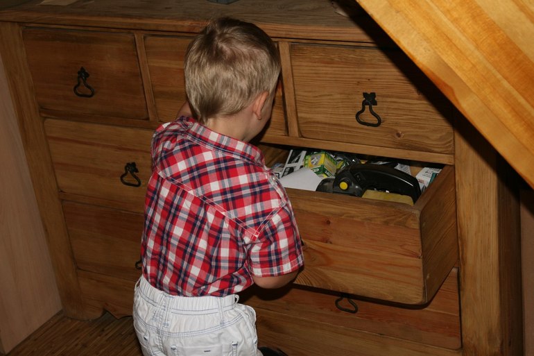 Потом к ящику в комоде, где лежат фонари.
