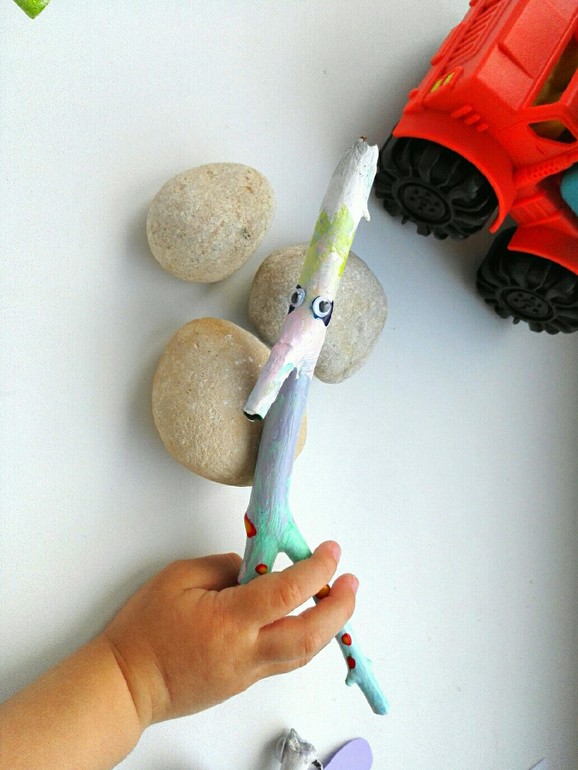 У наших детей так много игрушек, но у них ограниченный потенциал. Набор посуды для кухни, но это готовая посуда, в ней можно что-то приготовить куклам или накормить и все. Есть наборы фруктов и овощей, но ими так же можно накормить кукол или что-то приготовить, ну максимум еще посадить огород и собрать урожай. За ребенка все продумано и не остается места для фантазии, а это ведет к ограничению мышления... Я стала замечать как мои дочки увлеченно играют обычными коробками. А ведь и вправду у коробки не ограниченный потенциал! Как и у камушков и палочек. Палка может быть чем угодно! И мечом, и волшебной палочкой, и лопаткой, и посохом, и змеей,и корабликом, и мозаикой и конструктором, в общем нет предела детской фантазии... Так почему бы не дать ребенку придумать из этих, так любимых, палок что-то свое!