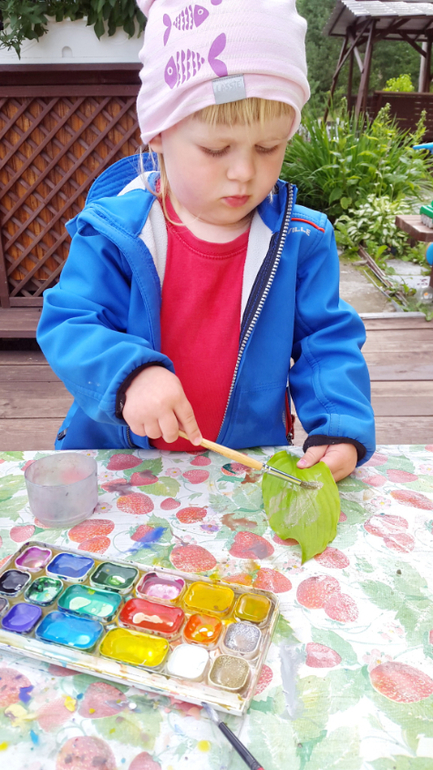 Художка ( красим, рисуем , придумываем новые способы рисовать)Иногда важно расширить привычные рамки, использовать подручные материалы для творчества. Мы заменили бумагу листьями от цветов, получилось для Маши так увлекательно, что она красила их долго-долго, потом смывала в тазу, потом снова красила. Мы попробовали разные оттенки, взяв за основу яркие цвета и разбавляя белым получали светлые тона! Еще в наборе была краска с блестками, а они очень красиво проявлялись на зеленых листьях и мерцали на солнце, это не могло не завораживать! Получилось настоящее исследования цветов, фактур, материалов...