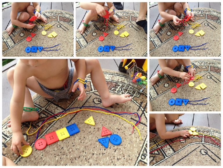 Отличная шнуровка, скоро сделаю карточки по образцу либо имитирующие одежду карточки и будем пришивать с сыном все что можно и нельзя))) после шнуровки я предложила сыну из двух шнурков сделать железнодорожные пути и собрать состав, отлично поиграли!