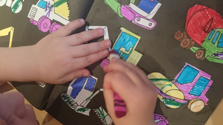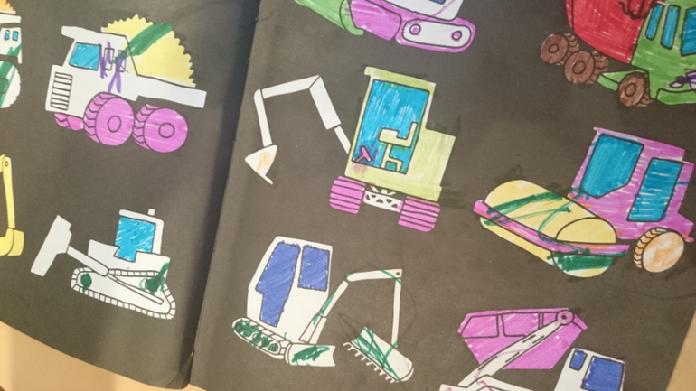 Это книжка-раскраска "Все тракторы и грузовики" изд-во "Карьера пресс"