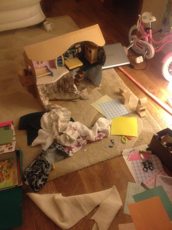 Вообщем...думала я думала и решила взяться за картон -посмотреть, как дочка отнесется к такой игрушке и стоит ли делать такую крупную покупку (хотя в успехе я была уверена на 100%) но деньги предательски не печатались