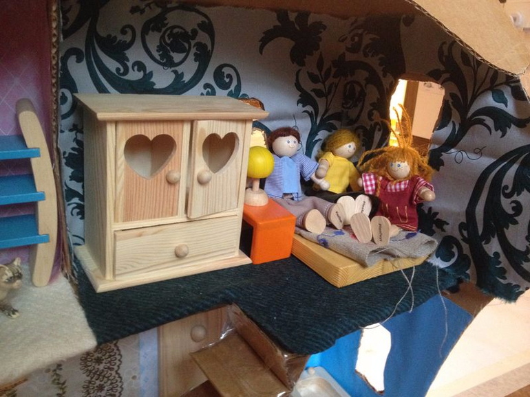 Семейное чаепитие, празднование дня рождения, приглашение в гости друзей, игры в прятки в домике, снятие и стирка шторок, переезд дочки от родителей в отдельную комнату, мытье кота в ванной, смывание содержимого кошачьего лотка в унитаз и смыв (прошу прощения за подробности), мытье посуды на кухне, запекание в духовке, чтение книг мамой или папой на кровати в детской, рассматривание звезд с балкона, побелка потолка, покрытие крыши "черепицей", новые коврики или полотенца в ванную, вазочки для столиков, установка подоконников на некоторые окна, раскрашивание голенького шкафчика для декупажа или обклейка его тканью, по типу аппликации, украшение дома к новому году, новогодняя елочка, гирлянды, картины на стенах в рамках из палочек или собственноручное создание багета, набивка шерстью подушек, застилание кровати в правильной последовательности, принятие ванной маленьким человечком и нахождение рядом с ней мамы и/или папы (как это происходит в обычной жизни), обеды и ужины в компании друзей…вообще любые жизненные ситуации могут быть «прожиты» и рассмотрены в этом маленьком мире, где есть место жизни, декору, творчеству!