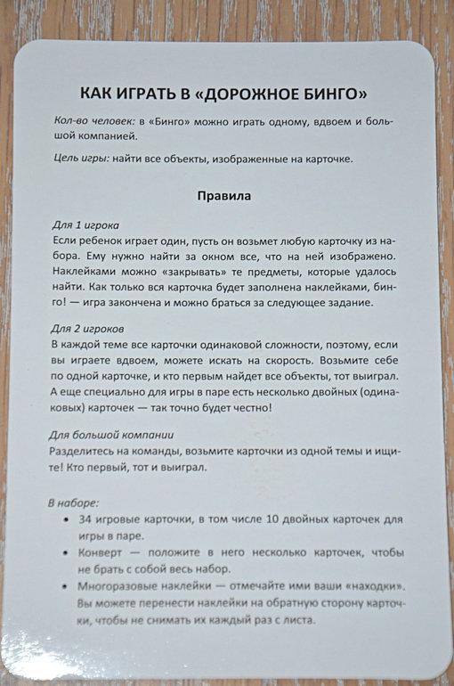 Игра "Дорожное Бинго" (купить в Май шоп, Рид. ру, Лабиринт, Озон)
