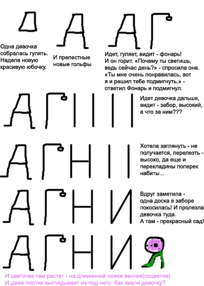 Такой вариант, например. Беседы с фонарем, забором и цветком можно развить и углубить =)