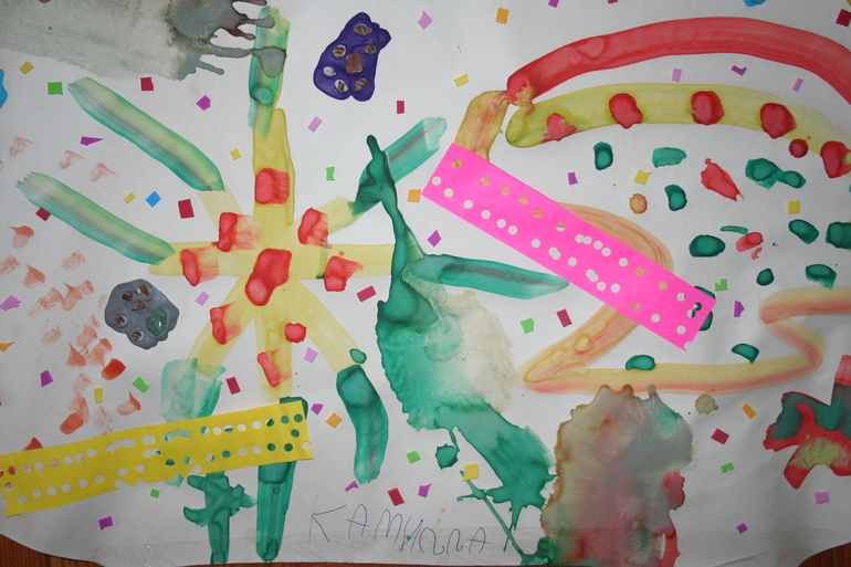 2. Еще одно более-менее масштабное полотно мы с Камилкой нарисовали сегодня и называется оно просто "Лето" :-) Обожаю абстракцию, так что сразу повесила картину на видное место.