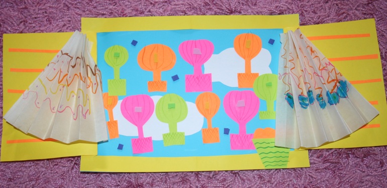 9. Кстати, тому же креативному крокотак мы обязаны еще одной нашей поделкой - аппликация "Вид из окна". У нас там парад воздушных шаров :-)
