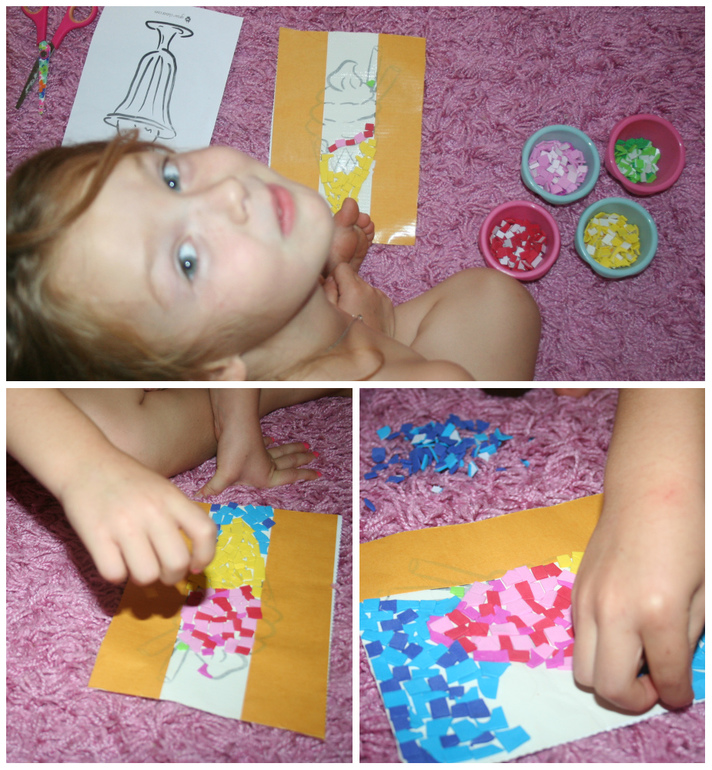 Делается такая аппликация очень быстро, а смотрится нарядно. Мастер-класс можно посмотреть здесь, а это чуть фото от нас.