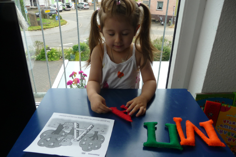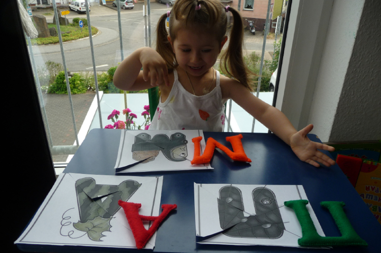 Распечатала я буковки, которые похожи на какой-то предмет. Под каждой буковкой было стихотворение. Их я сразу обрезала и зачитала. Нарезала лёгеньких пазлов из картинок,