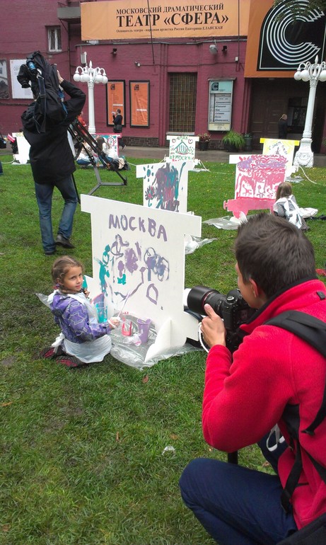 Агния разрисовывала вагончик. Мужчина пристал, что надо рисовать что-то .связанное с Москвой, я сказала,что мы еще не можем, тогда он попросил,чтобы хотя-бы слово Москва написала Агния. Ну,написала по буквам,с моей помощью)