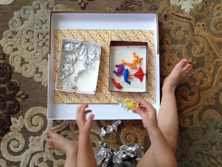 Вот наши морские обитатели (заворачивать можно все что угодно, разную мелочевку, которая у Вас есть), сын с таким трепетом разворачивает: