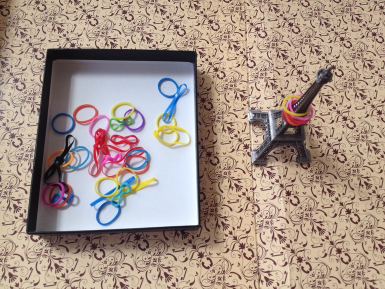Нанизывали резиночки (тоже сыну очень понравилось):