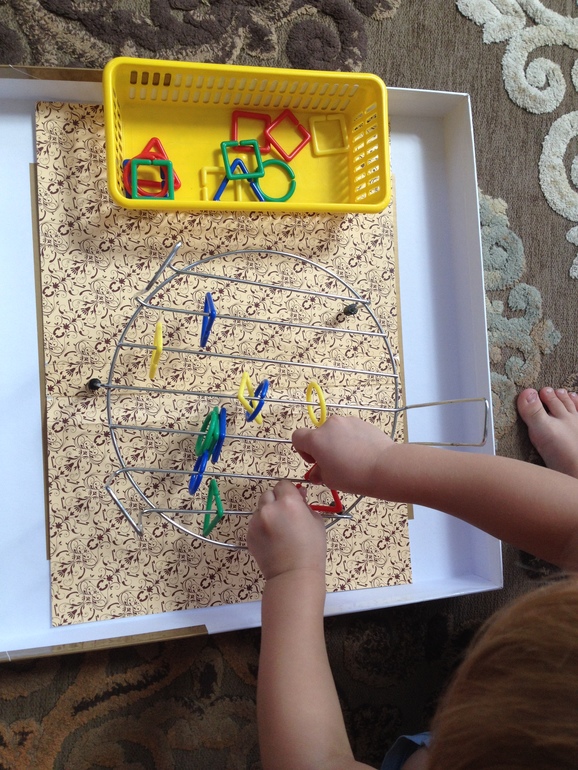 Развешивали наши фигурные скрепки;-) скоро вернемся домой и будем развешивать с помощью прищепок нашу мини-одежду от игрушек: