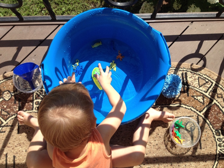 Ну и еще пока тепло любит возиться с тазиком и различными сопутствующими предметами на балконе: