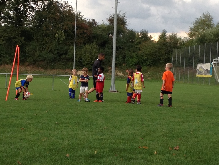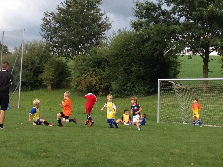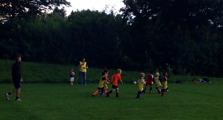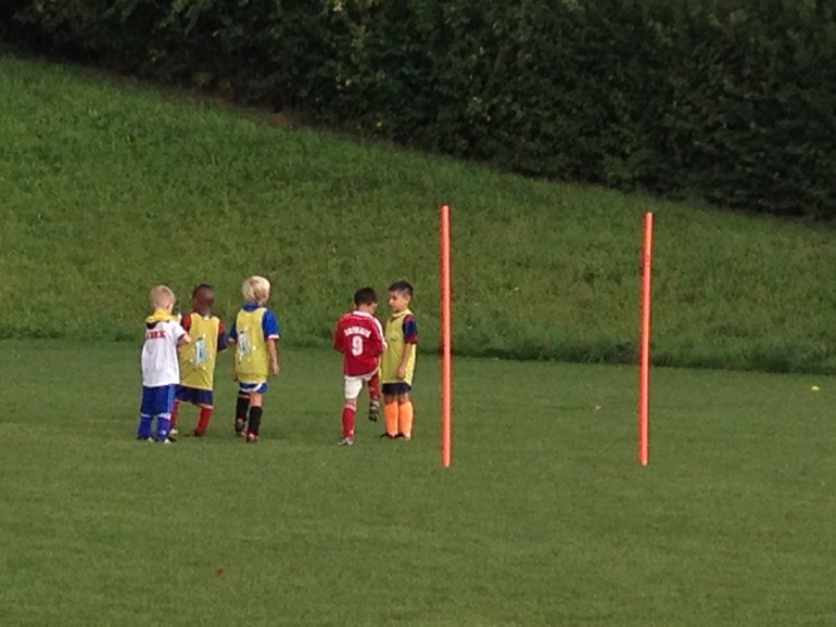 Подвижные игры и спорт ( зарядка, игры на улице и в в воде, танцы, игры с мячом и.т.д.)Мы пошли в прошлый четверг на пробное занятие. У нас в "деревне" есть футбольный клуб и при нем есть занятия для джуниоров. Группа J:-) совсем мелкие, доя них даже чемпионатов как таковых нет еще. Пока там в большинстве 2009-2010 Г.р.., мы там самые мелкие . Деть получил настоящие бутсы с тремя полосками;-) все как положено;-) и с папой в 17:30 после сада поехал туда. Занятия на улице при любой погоде :-) в группе были несколько человек, которых мой ребенок знает по саду. Прошло на ура. Только мой деть еще не понимает, что есть свои ворота и чужие:-)
