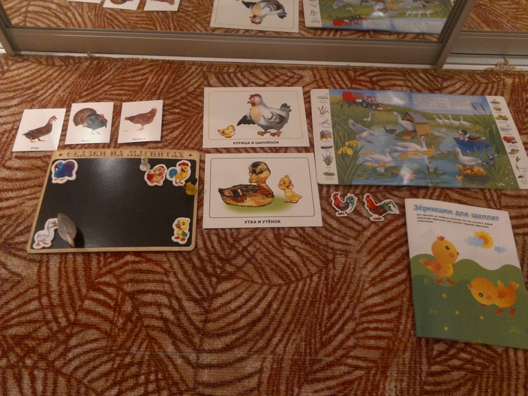 Про домашних птиц. Курочка, гуси, утки, цыплята и петух. Этих Влад знает и называет. А вот индюка не называет. Сложное слово, да и я не знаю как он говорит. Но акцентировала внимание сейчас на нем, чтоб запомнил. В рассылке особо понравилось, что птицы предсталенны полной семьей, а не как в большинстве книг - мама и малыш. Если подскажите книги или игры с папой, мамой и малышом, буду благодарна. !