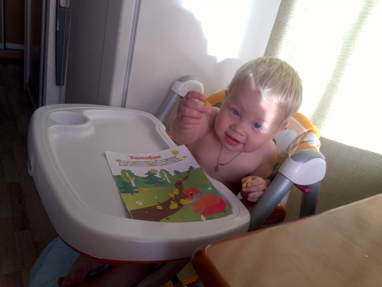 В сказке влад всех называет, мы ее прочитали и обыграли. Все задания из рассылки сделали, те что на логику и подобные. Стишки и потешки я не люблю, потому не читала и не играли в них. Из творчества в итоге сделали 2 задания. Клеили круглые наклейки и колобка из пластелина пускали по дорожке.