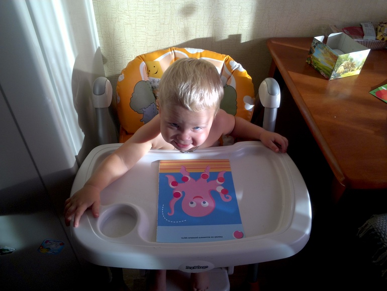 С цветами у нас в последнее время хорошо, неожиданно для меня Влад стал сортировать по цветам. Если не балуется, то хорошо показывает предметы определенного цвета. Из рассылки показал банан и абрикос среди прочих.