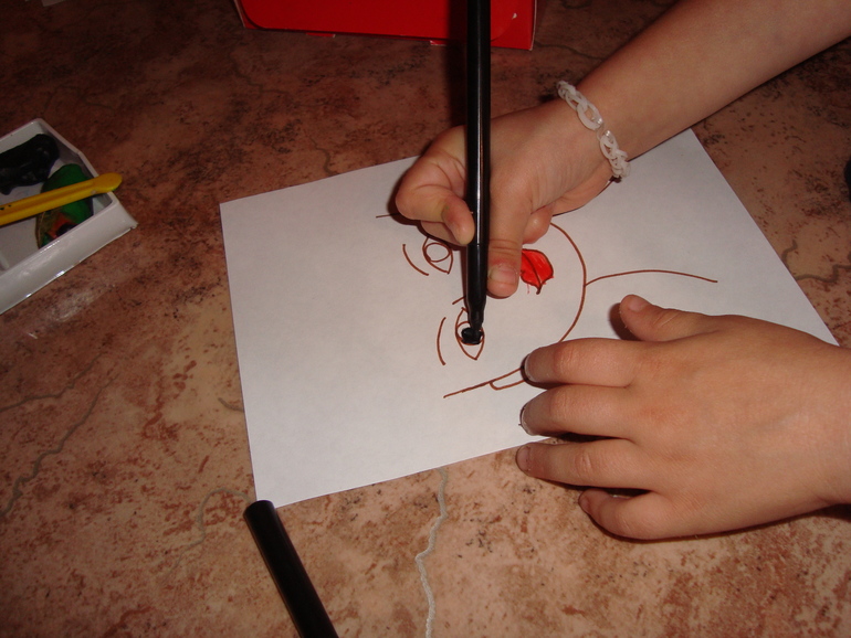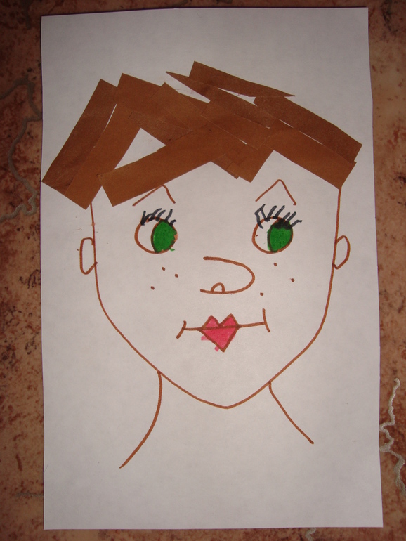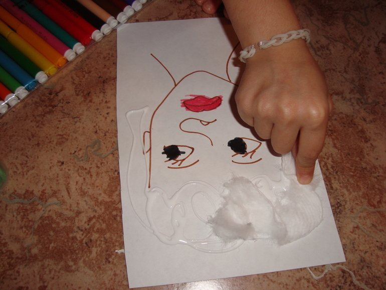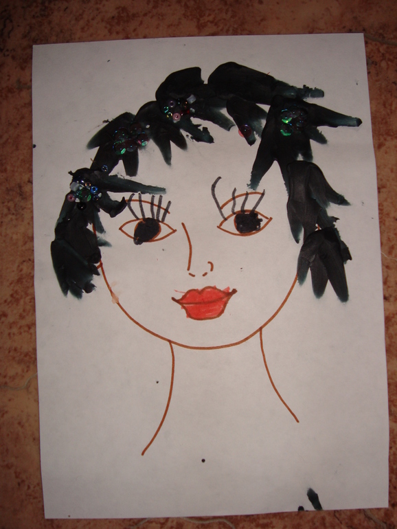 Для прически используем цветную бумагу. Режем на полосочки и наклеиваем как душа пожелает.