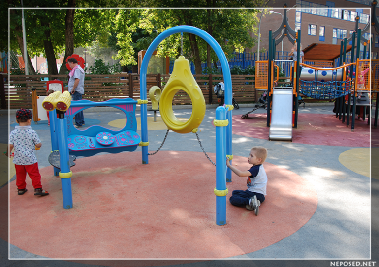 Необычная карусель для старших детей и разные качели.