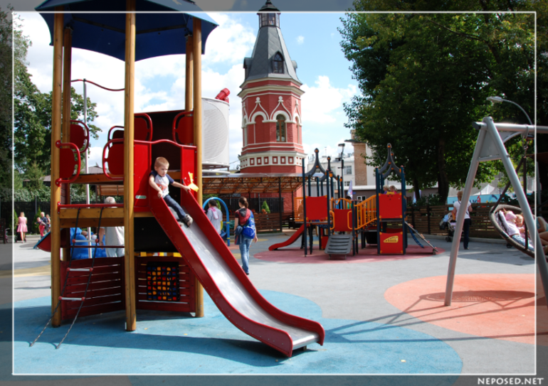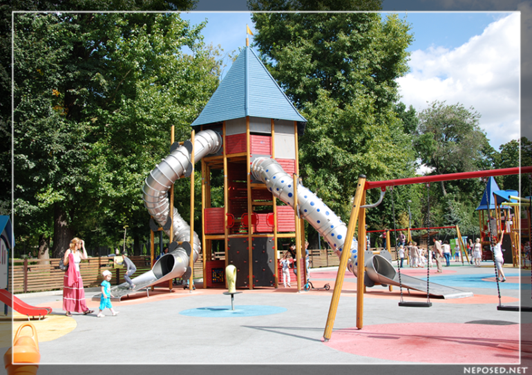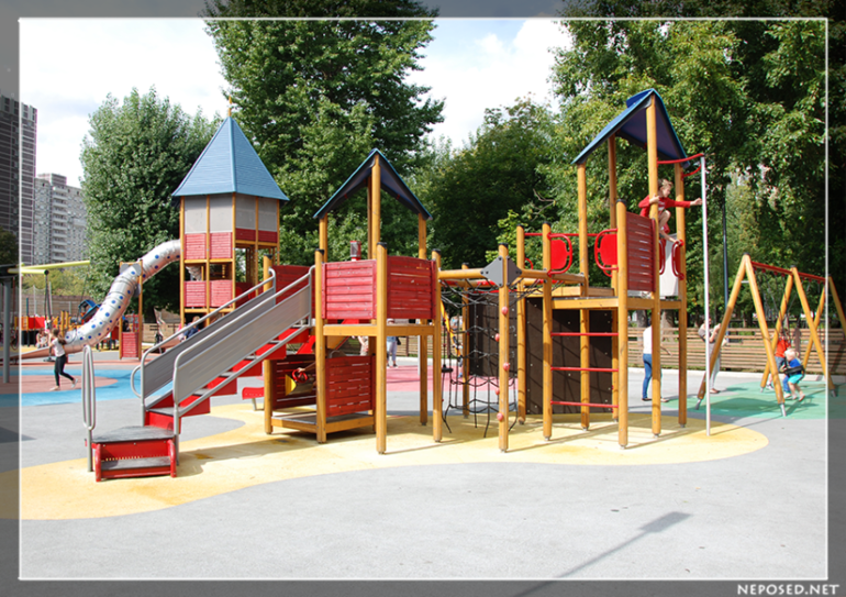 Все возможные горки и лазилки для разного возраста.