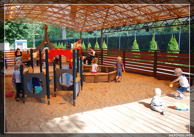 Большая песочница под навесом, где играют в основном малыши.