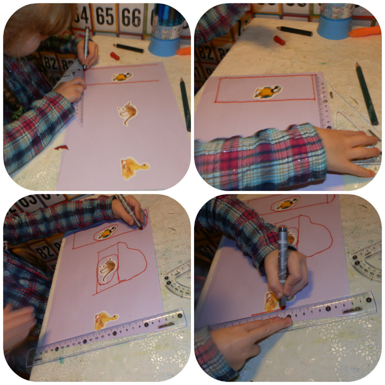 лица отправлю и ежика, а домики это просто наклеины 3 наклейки на лист а4 наклеины и по линейке ей надо начертить домики для каждого!