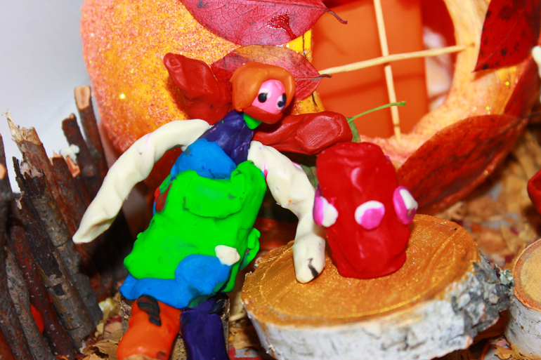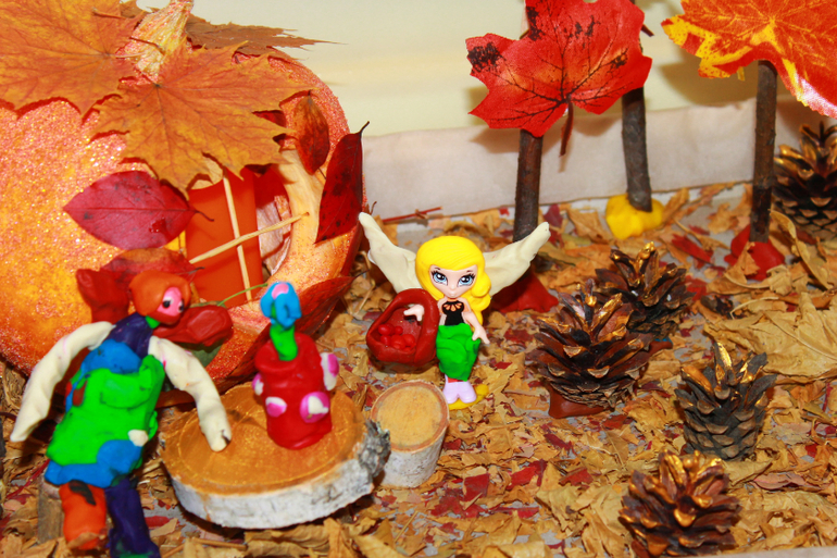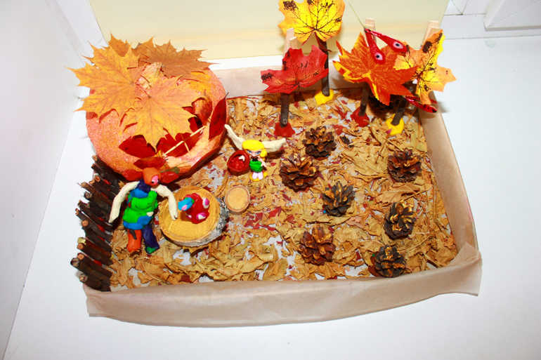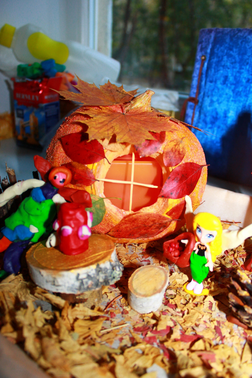 Закончился день поделкой для садика на осеннюю же тематику. Что мне понравилось,что Саша делала бОльшую часть сама. И идея ее. Домик Осенней Феи))Видите ту дылду у домика?) Это и есть сказочная волшебная фея)То,что наша поделка будет выделяться среди кучи,аккуратно сделанных это точно. Но именно этим она и мила)