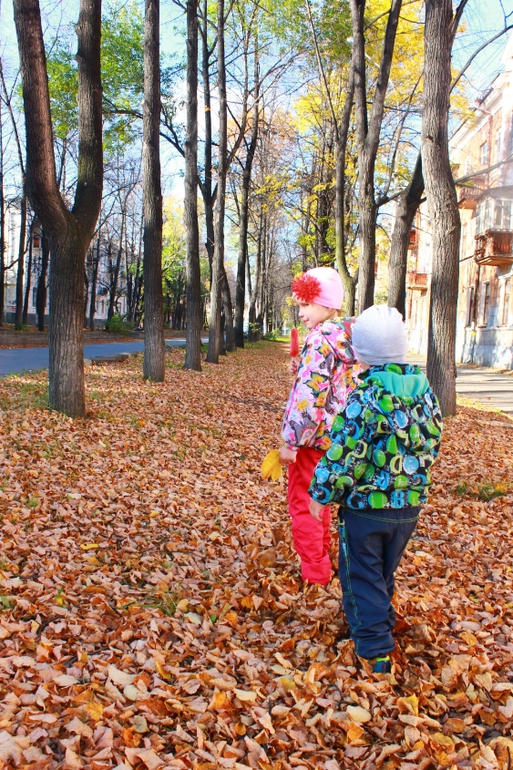 После театра дети-таки уломали меня на кафе с детской игровой комнатой. Я терпеть подобные заведения не могу, но гулять так гулять и выйдя из дома в 10 утра вернулись после кафе в 14 часов. Переоделись и отправились гулять. И гуляли мы весь оставшийся день,придя домой уже в 8м часу вечера. Погода чудесная,осень в разгаре.