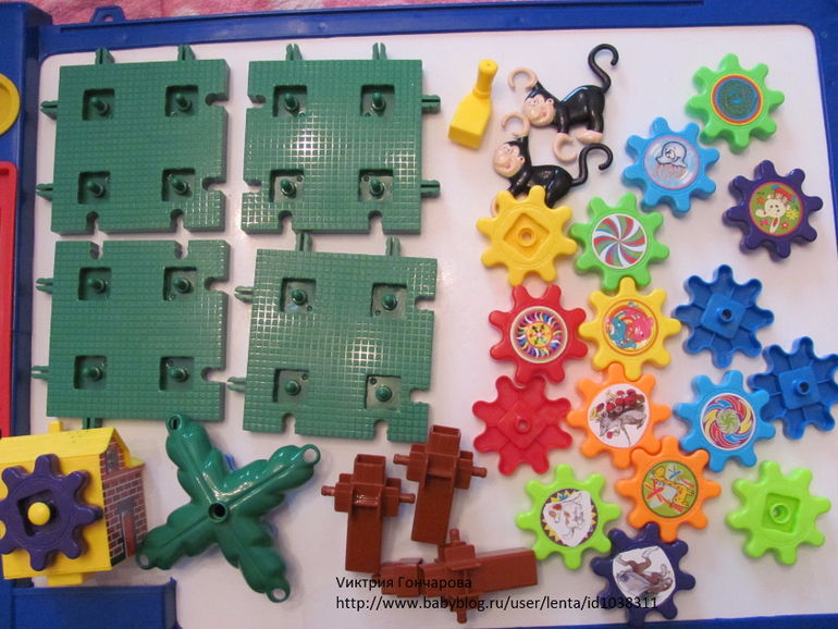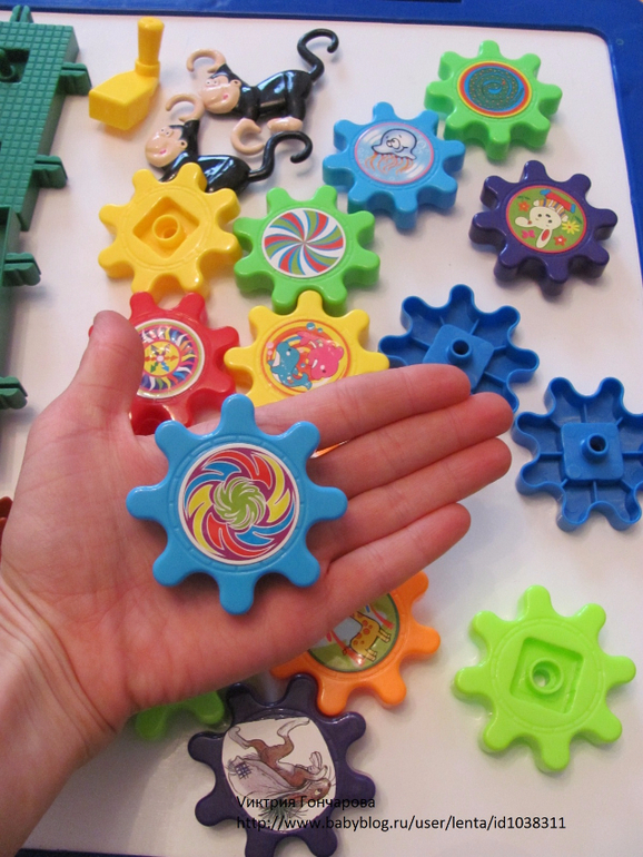 Следующий конструктор с шестеренками. Привлек внимание сына после шариков, в возрасте 1,7. Вначале, конечно собирала сама, ребенок пытался вставлять шестеренки. Конечно понравился эффект кружения, движения шестеренок.