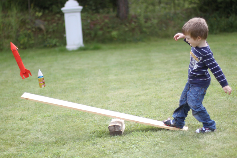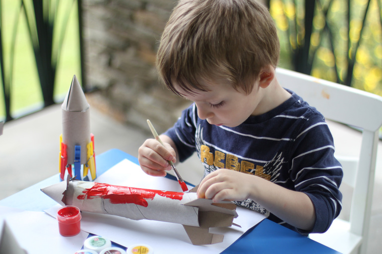 На следующее утро мы поближе познакомились с ракетами. В книгах мы о них почитали, сделали из картона двух видов - с прищепками и просто из тубуса от бумажных полотенец