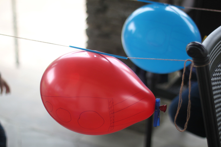 Попробовали сделать опыт с ракетой-шариком (почему-то не произвело никакого впечатления, даже странно).