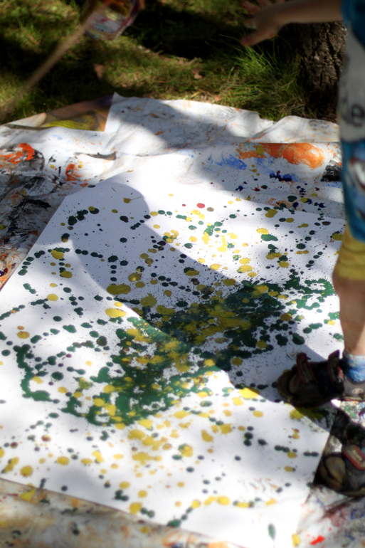 На следующее утро решили космос нарисовать - ватман, валики, краски и творческий настрой.