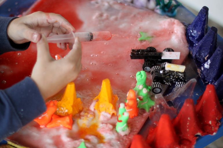 Космическую пыль (сода+вода+блестки)