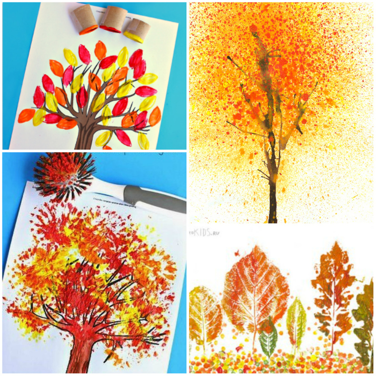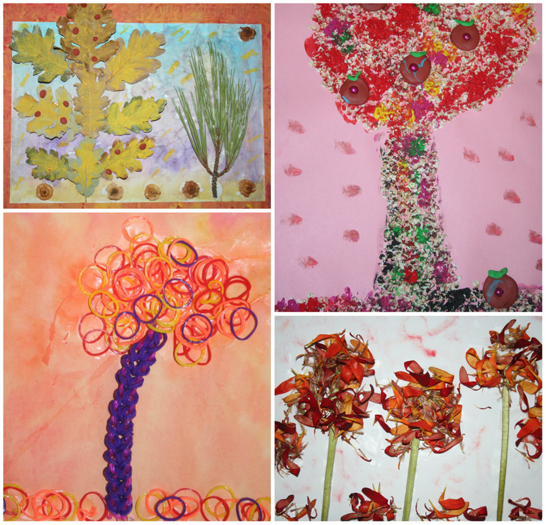 Не спрашивайте почему деревья? Наверное, мама просто помешалась на этой конструкции. Но я просто не могу остановиться, и вновь и вновь предлагаю Камилке сотворить осеннее деревцо, и к счастью, она не против :-)