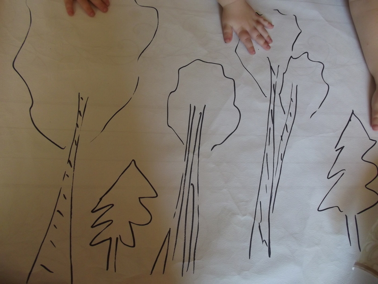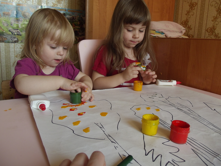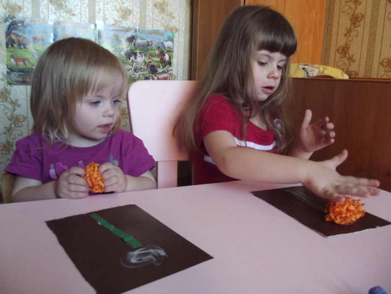 Раскрашивали осенний лес с помощью губок.