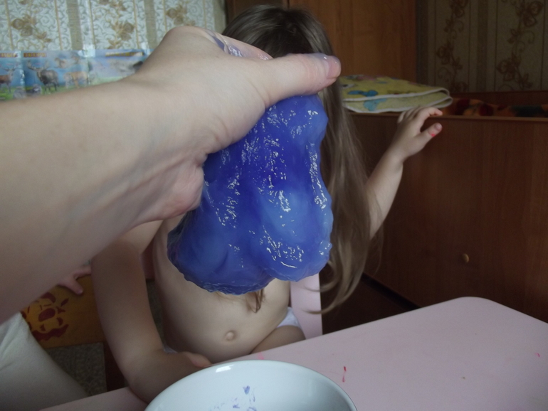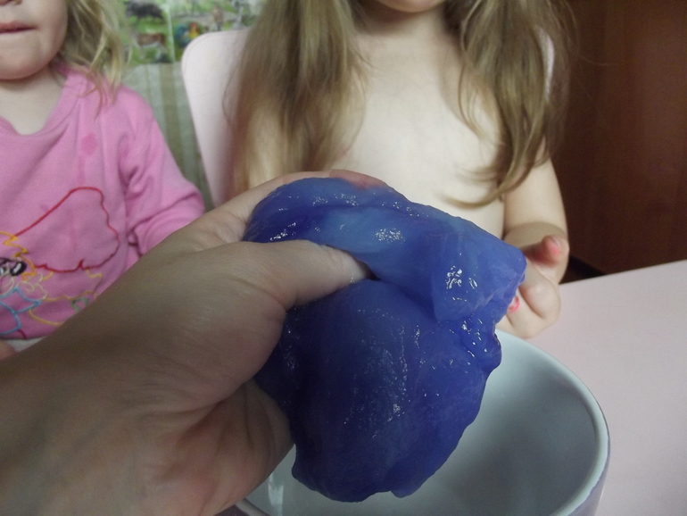 А если массу оставить на ночь в холодильнике,она загустеет.Станет похожа на пластичное желе или игрушку - лизун.