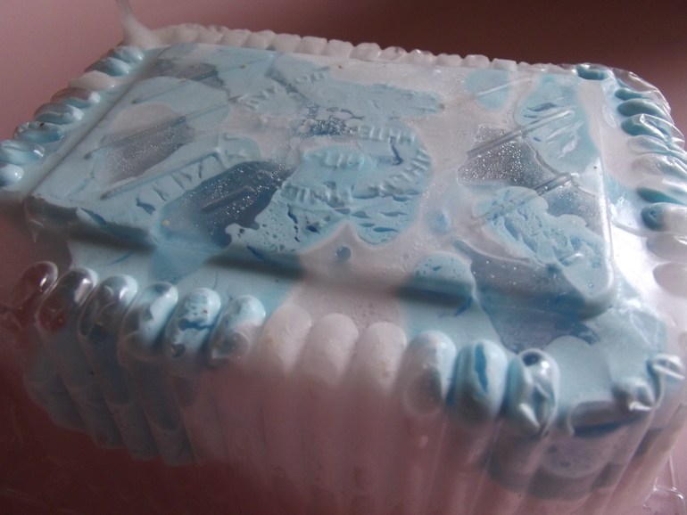 Сварить кисель из крахмала 2 столовые ложки ,воды 1 стакан и сахарного песка 2 чайные ложки.Остудить,подкрасить,переложить в плотный пакет.