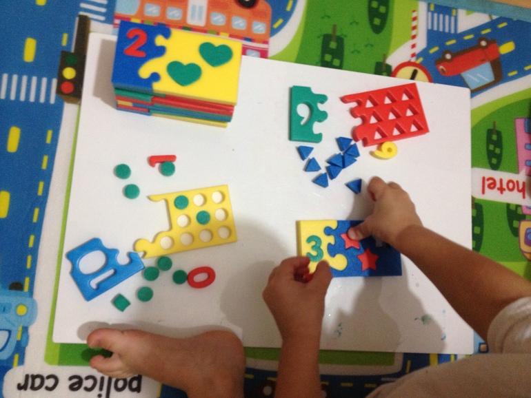 Развивающие игрушки (пазлы, вкладыши, конструкторы, мозаики)Интересный наборчик из мягкого полимера под названием "Мозаика мягкая "Математический набор" от производителя "Флексика", стоит порядка 200 руб. на май-шопе, нам очень ОЧЕНЬ понравился (сын такие задания очень любит):