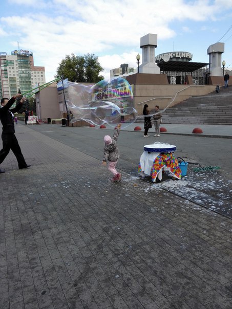 А еще случайно мы попали на уличный праздник, где были клоуны, шоу гигантских мыльных пузырей и батут для всех! Уходили со слезами))))