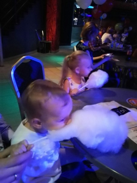 С девочками были на детской дискотеке, которая проходила в обычном взрослом ночном клубе. На сцене выступали детки, сами дети были и ведущими и проводили конкурсы, в зале присутствовали различные ростовые куклы и много всяких лотков вкусностей)))