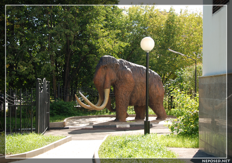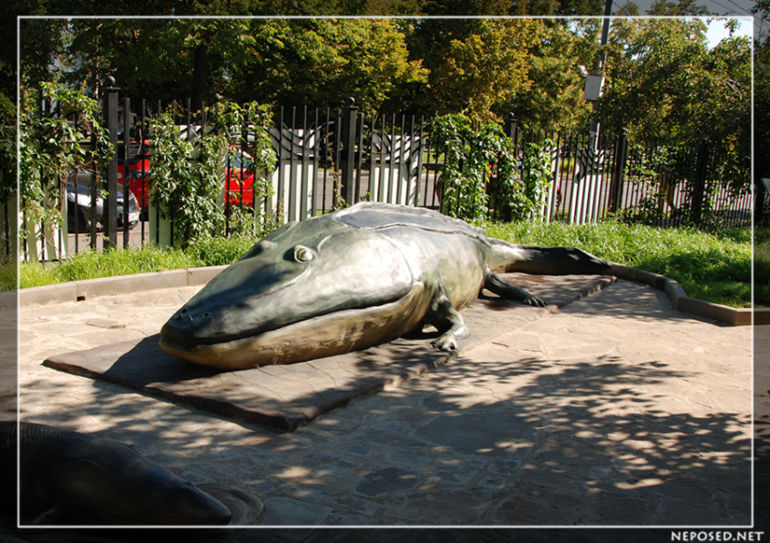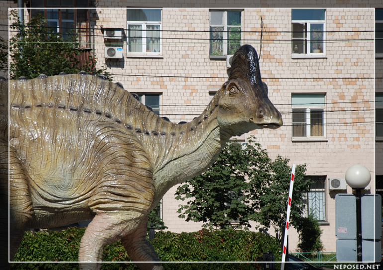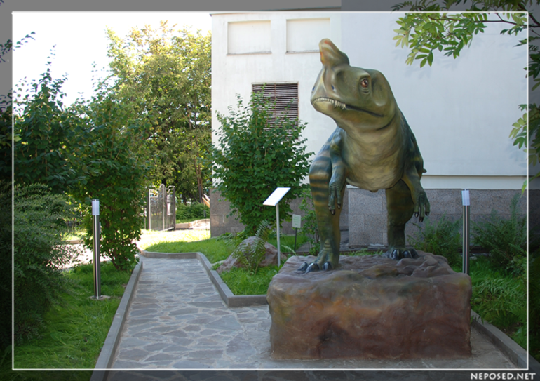 На улице открыли небольшой, но очень интересный палеопарк. Все экспонаты, которые в нём есть, были найден на территории России! И сделаны в натуральную величину!