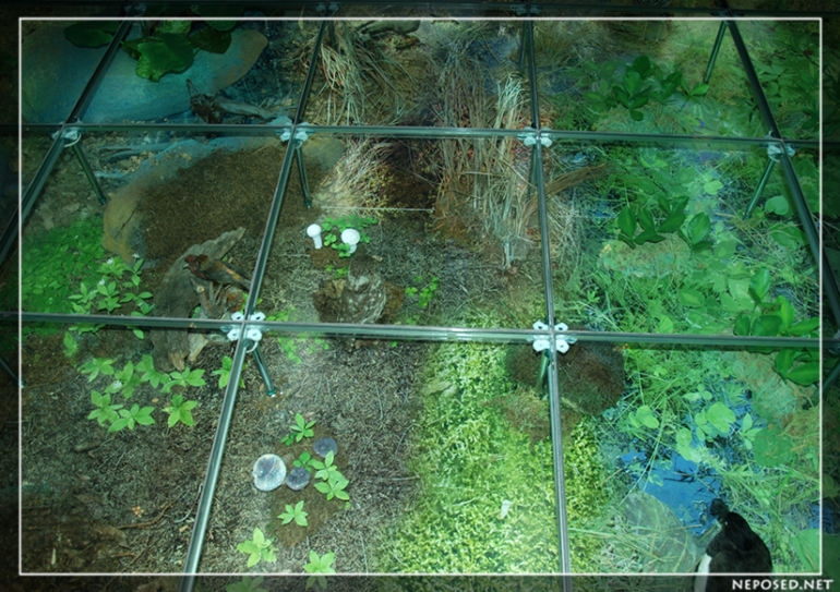 Под ногами прозрачный пол! Очень красиво! Под стеклом расположены разные экосистемы: болото, луг, водоём, хвойный и лиственный лес. Интересно рассматривать будет с самыми маленькими.
