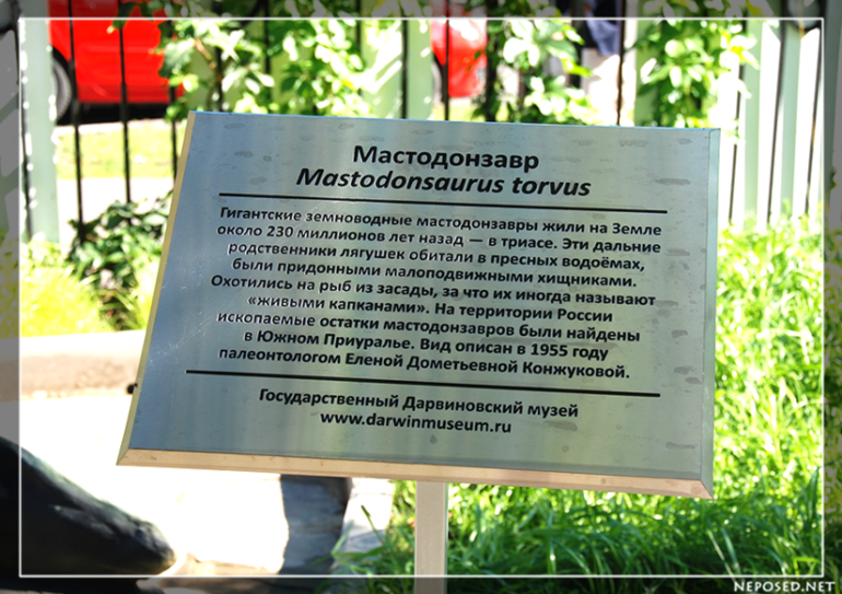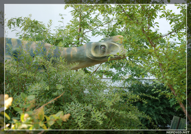 Все представители древности снабжены табличками с названием, информацией, когда и кем был описан вид, где были найдены останки. Подписаны не только динозавры, но и растения, посаженные вокруг.