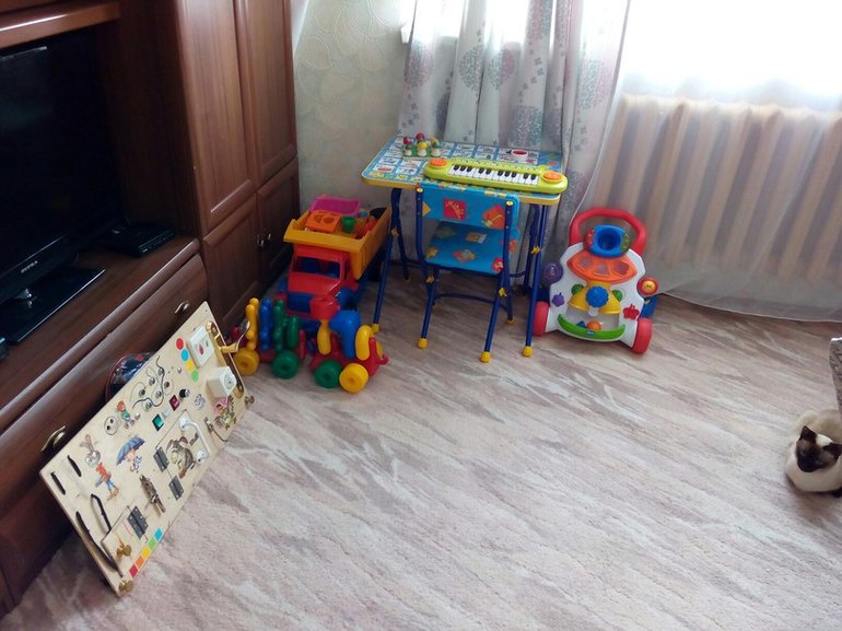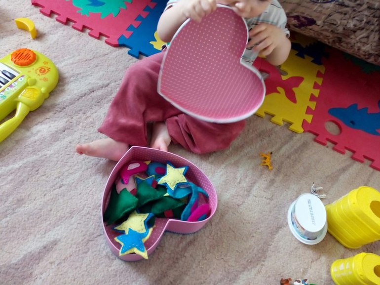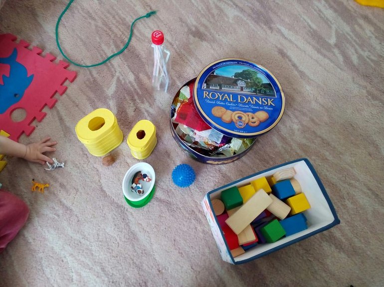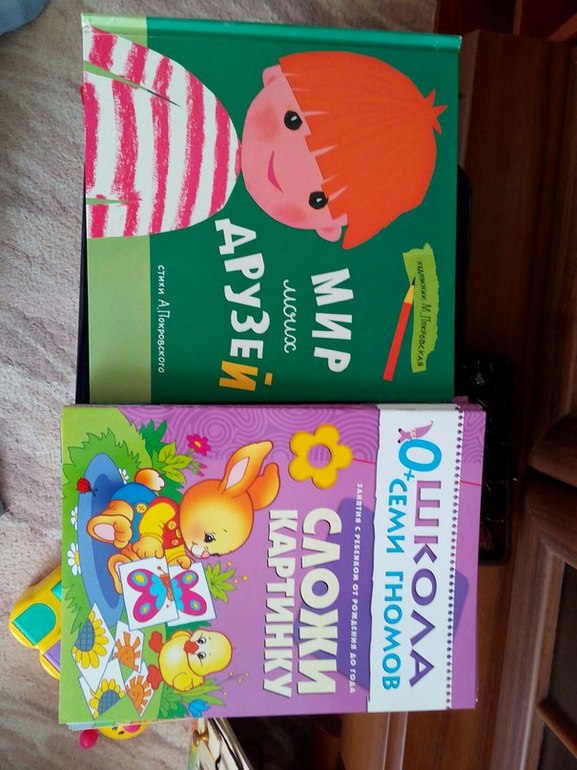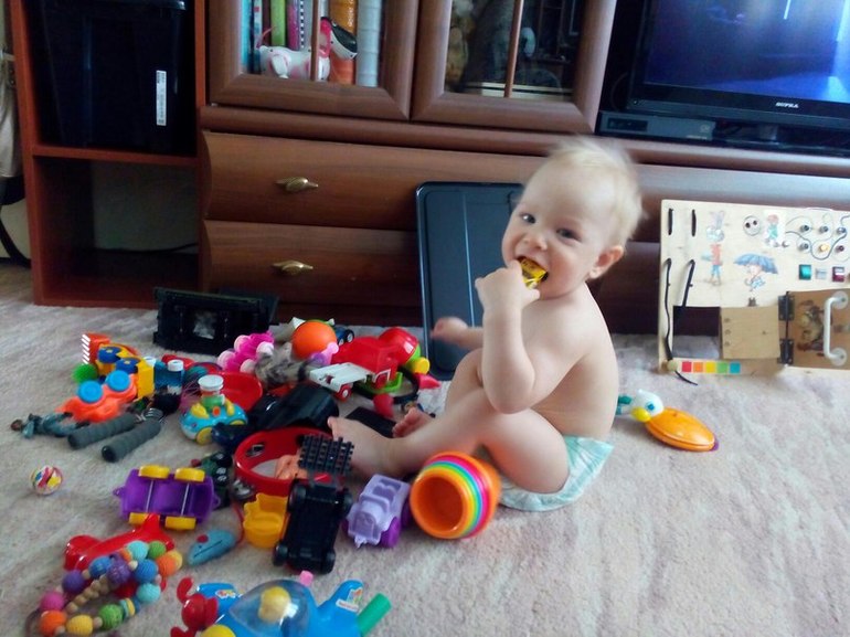 Все фоткать не стала. Основное и любимое. Коврик для рисования водой. Полянка с грибочками на штырьках. Деревянные бусины большие в виде фруктов и животных. Стаканчики Кроме основных книжек типа Репки, Колобка и т.п. очень нравятся тактильные книги (на фото зеленая). Школу семи гномов покупала не набором. Только несколько книжечек, которые мне понравились. Костя их любит. Достает сам и подает мне читать. Из юлы уже вырос. Конструктор пока только грызет Вот это доска-самоделка. Отличная штуковина! Делал муж подруги, к нам "по наследству" на время перешла. Костя обожает ее Доски с вкладышами Музыкальное пианино Игрушка на действие-результат. Три кнопки.Одну надо нажать-выскакивает божья коровка. Одну-покрутить. Вылетит птичка. А третью дернуть вверх-вниз. Выскочит лягушка Эти игрушки шила сама еще беременная. Хотела делать мобиль. потом передумала. Но Косте нравится их перебирать Это всякие штукенции для развития моторики. Банки с дырками для грецких орехов и фундука. Бутылка с трубочками коктейльными. Колючий шарик для стирки. Просто коробочка с мелкими животными. Коробка с фантиками. Их здорово просто подбрасывать. Под одежду можно прятать для развития моторики. Коробка с деревянным констуктором. Костя пока им зубы чешет Просто ящик со всякой мелочевкой Так как у нас однушка, а хранить это все ulr-то надо мы заказали распиловку нужного нам размера. Муж собрал тумбу. Ящики из икеи. И по квартире наклеила файлики маленькие, туда картинки вставляю периодически. Удобно, когда идем, например, на кухню, показываем глазки, носик, кто как разговаривает и т.п. Как-то так. Игрушек много. Даже слишком много. Самое интересное, что купленное мной можно по пальцам пересчитать. Надарили и отдали))) Нравится, что они все в ящиках. Для Кости почти каждый раз как новые, так как не на постоянном обзоре.