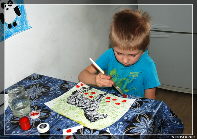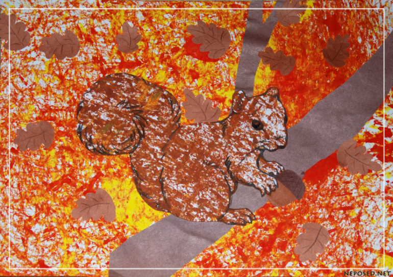 А потом Дане надоело и мама сама нарисовала белочку ) Вообще ему больше всего понравилось катать шарики, он как-то разлюбил рисовать и клеить, рисует только карандашами для своих игр.