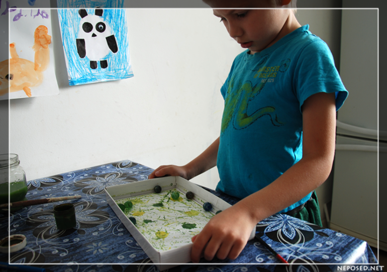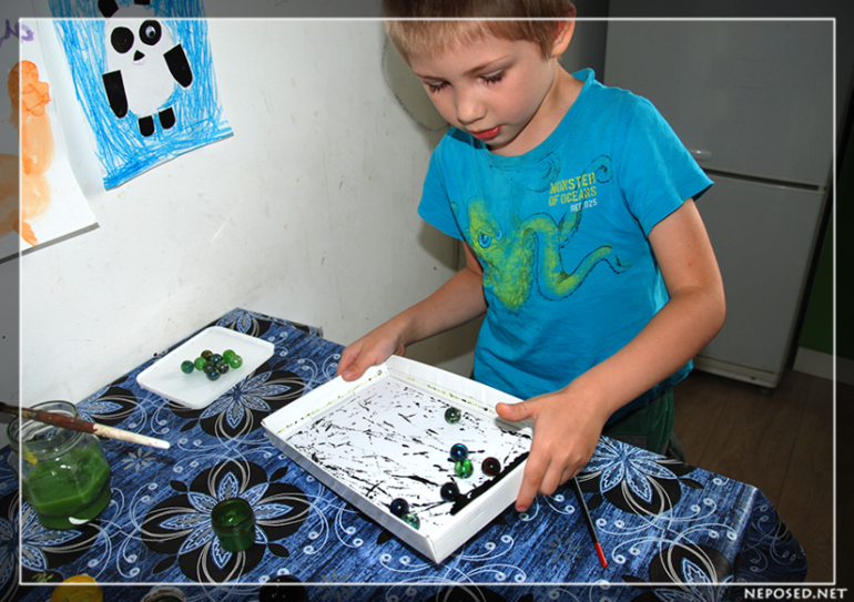 Художка ( красим, рисуем , придумываем новые способы рисовать)Давно я хотела попробовать порисовать стеклянными шариками. Думала ерунда получится. Ан нет, и мне и Дане очень понравился и процесс и результат.