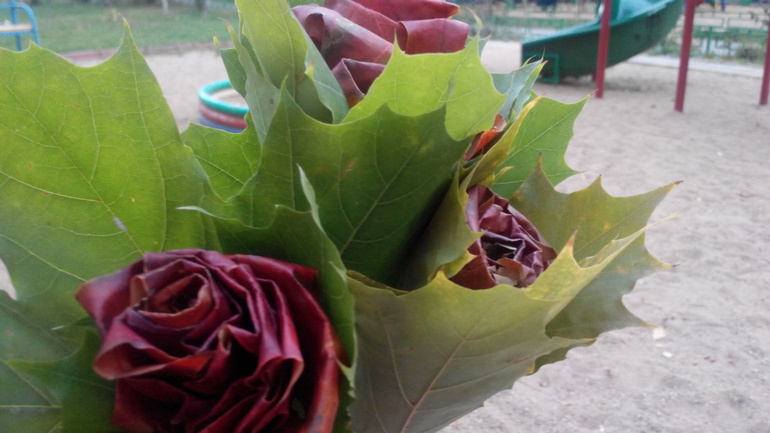 Наши розы из кленовых листьев