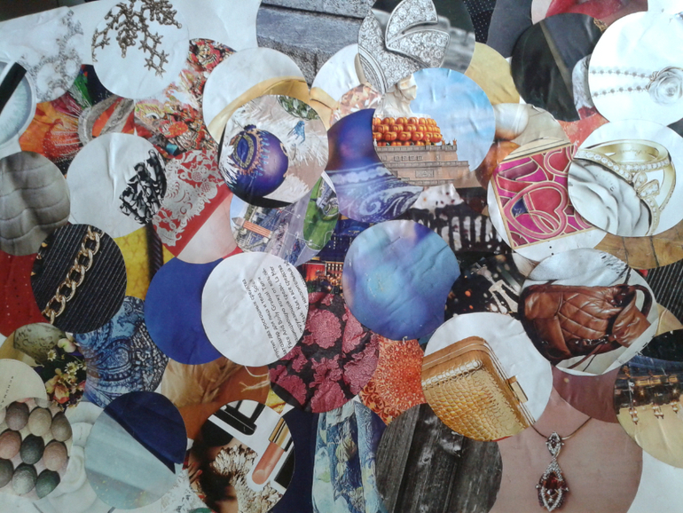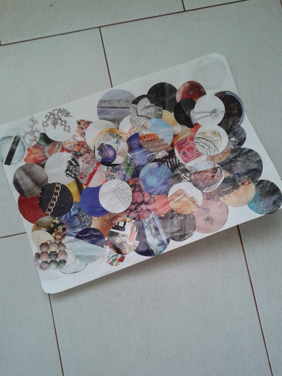 А вот пример наших любимых коллажей (я очень ценю этот вид творчества: ребенок надолго занят, моторика развивается):
